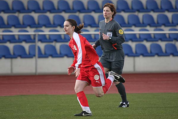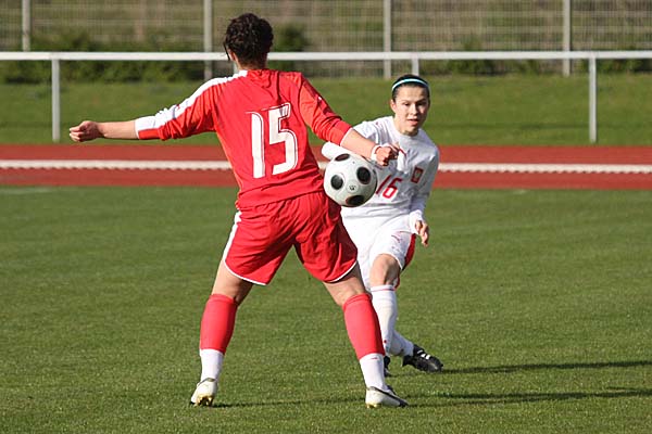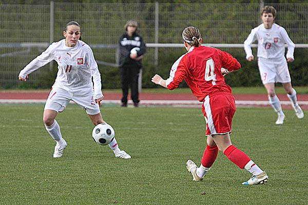 allerdings alles andere als eine gute Figur machte. In der 22. Minute hatte das Team von Walter Späni dann Glück, nicht das zweite Tor zu kassieren, als nach einem Freistoß durch Malgorzata Lesinska von der linken Seite die Schweizer Torfrau wieder unsicher erschien - aus dem daraus folgenden Chaos im Strafraum