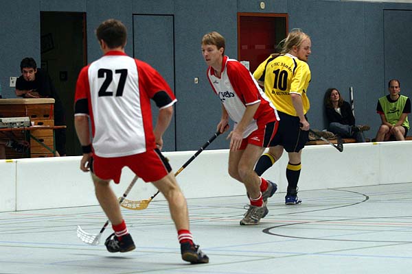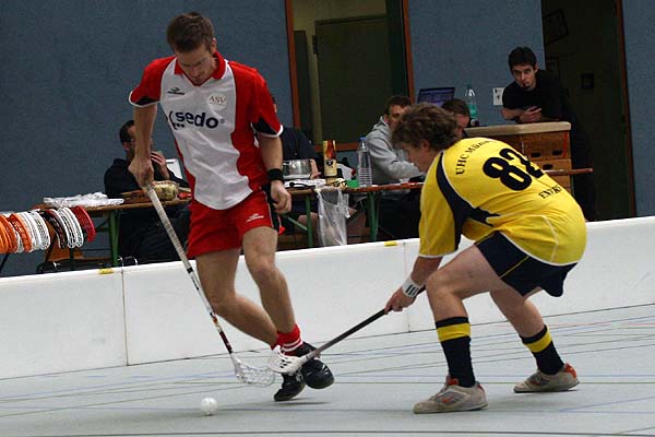 Im dritten Spiel trafen die favorisierten Domstädter gegen die zweite Münsteraner Vertretung an. Nachdem Köln früh 2:0 in Führung ging, spielen der ASV in der Defensive sehr leichtsinnig und wurde entsprechend verdient mit dem Münsteraner Ausgleich bestraft. Doch die Kölner fingen sich wieder - und spielten nun sicher und routiniert weiter. Münster war nun chancenlos und haderte zudem mit dem körperlichen Spiel der Kölner, anstatt sich auf die vom soliden Schiedsrichterpaar vorgegebenen Grenzen einzustellen. Am Ende stand ein hoher, hochverdienter 16:2-Sieg für die deutlich schneller und defensiv sicher spielenden Kölner. ![]() ![]() ![]() ![]() ![]() ![]() ![]() |