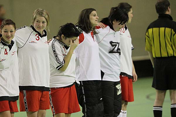 die gegnerische Abwehr. Österreich kämpfte vielleicht mit stumpfen Waffen, aber mit viel Herz - und so hatte es die sympathische Mannschaft auch verdient, in der 32. Minute selber einen Treffer zu markieren. Nach einem Konter über Katharina Körbler