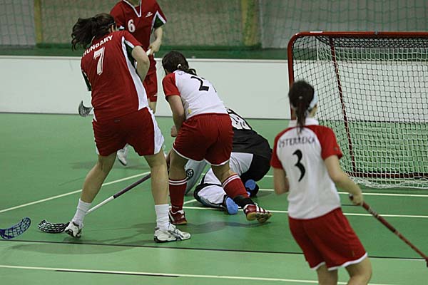 No comment - Austria just had six field players and were overrun by the Hungarians, who could have even won with a higher score than the final result of 34:0. This was the highest-ever victory in an official senior women national team match in the history of floorball - the only higher women results have been written by the Polish Under 19 girls, who have beaten the Ukraine 39:1 and 50:0 in December 2007.
