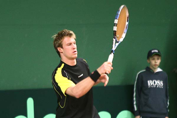 den vierten Durchgang mit einem souveränen Aufschlagspiel, zusätzlich hatte man das Glück des Tüchtigen, als im zweiten Spiel Gregorc beim Stand von 30-40 ein Doppelfehler unterlief.