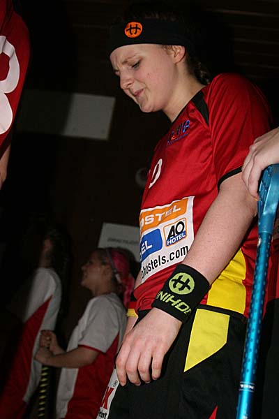 durch die gegnerische Linie durchbrechen und punkten. Julia Pradel erhöhte in der 11. Minute auf 2:0, aber daran, dass Österreich nur kurz danach durchbrach und Michelle Dietz etwas ungeschickt einen Strafschuss verursachte, sah man die Anfälligkeit des deutschen Spiels. Caroline